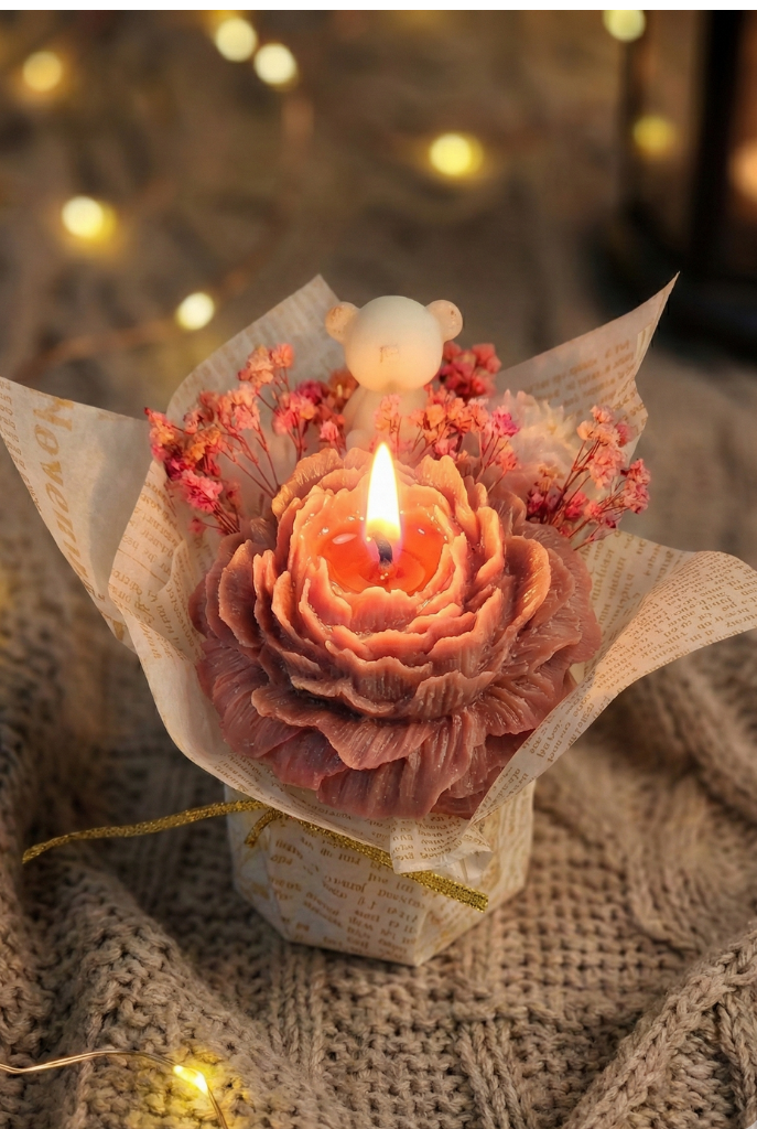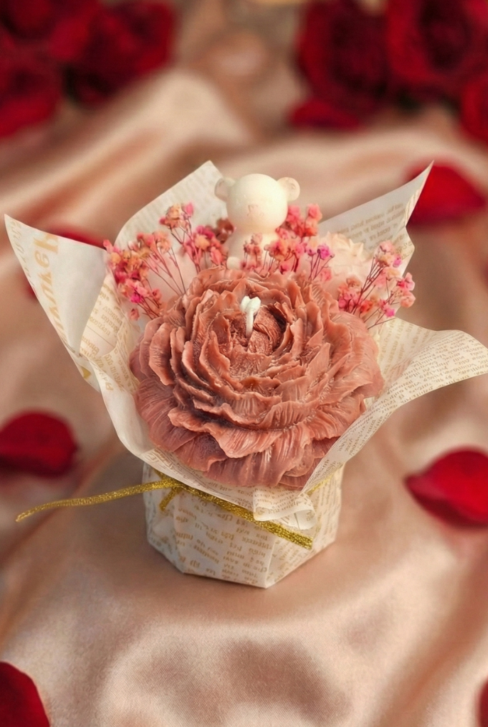 Ayıcıklı Çiçek Mum, romantik tasarımı ve el yapımı dokusuyla özel anlara eşlik etmek için tasarlandı.